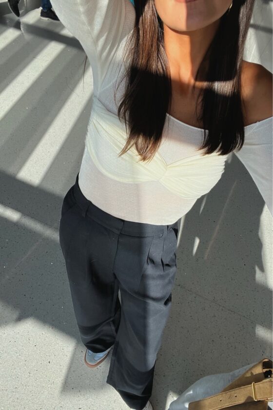 7. You guys know I’m obsessed with Abercrombie and these black pants from there are some of my top favorites! They are the perfect wide leg pant. I love how they can be dressed up more polished for a work pant, or down with sneakers. I like to wear them when I’m traveling on an airplane too because they are so comfy. They are under $100 and they go on sale a lot – and they come in lots of different colors! I love the lighter colors for spring and summer too!