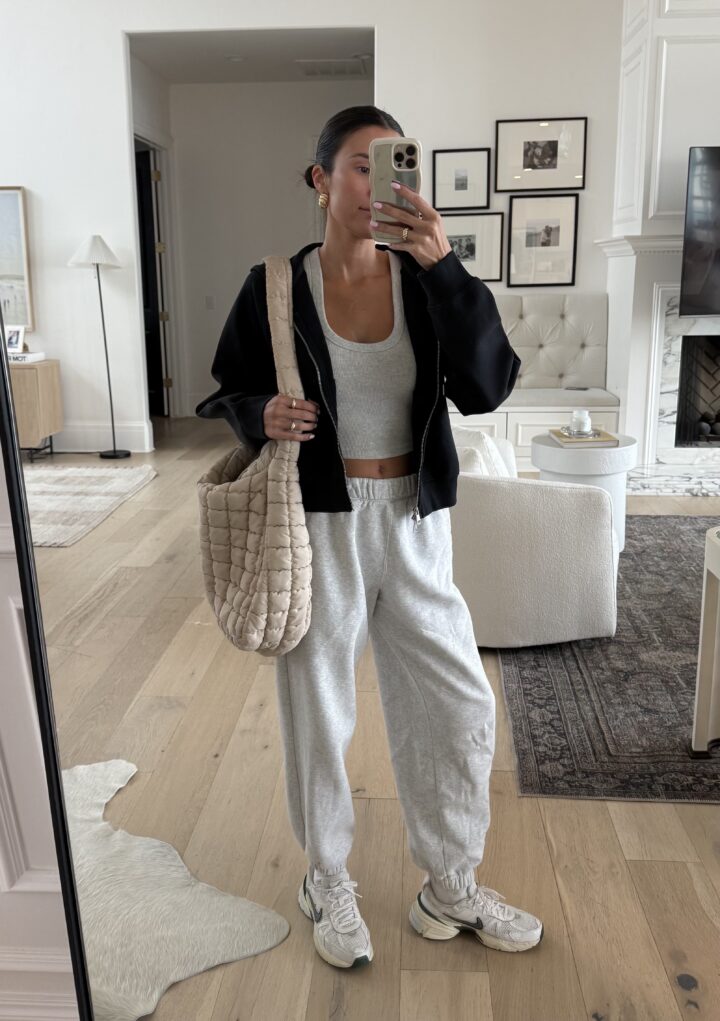 I’ve been wearing and raving about these gray jogger sweatpants for YEARS! They are such a closet staple and something I wear multiple times per week. They are so comfy and great quality – they hold up so well and wash so well.